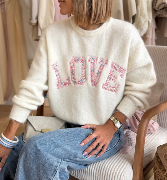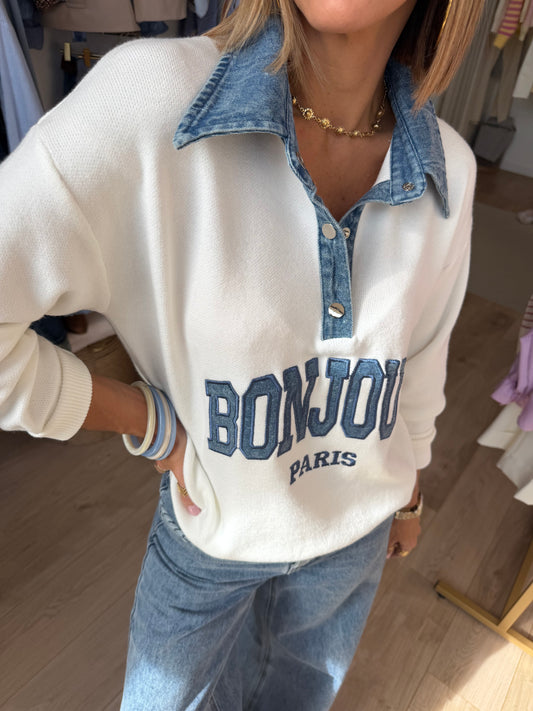 Pull Bonjour col denim
