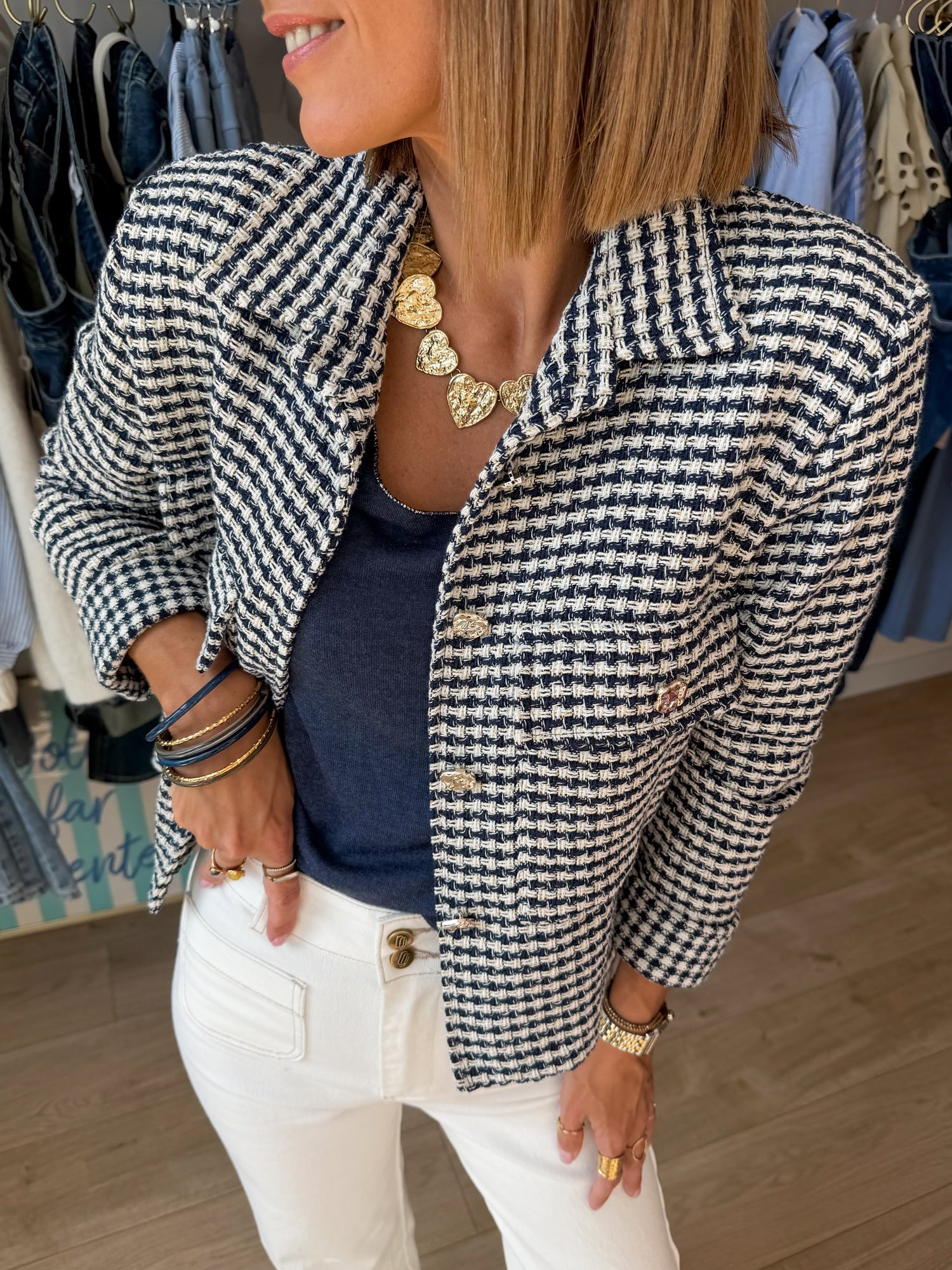 Blazer Joana bleu cœur brodé
