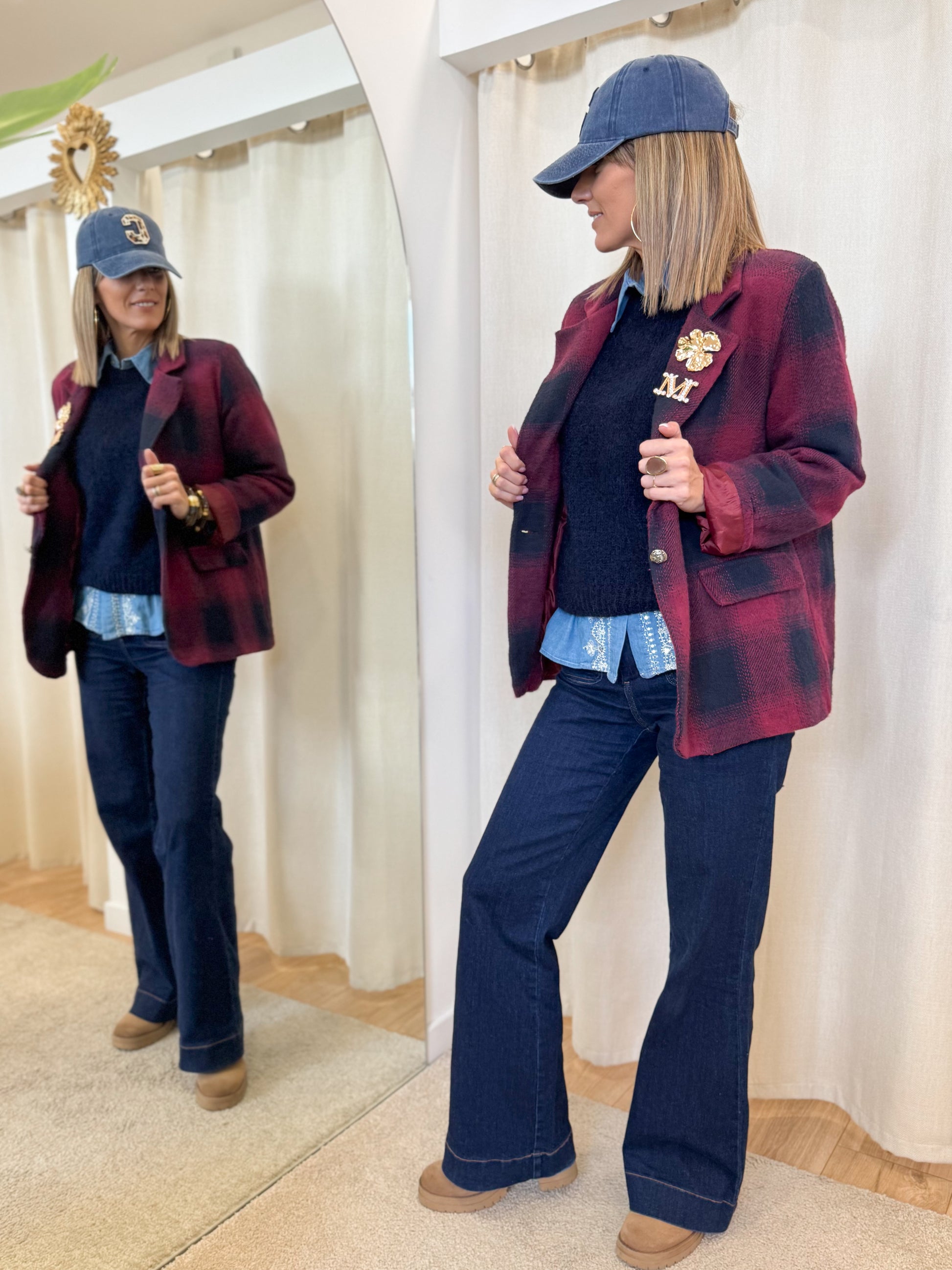Avec son motif carreaux bordeaux & bleu marine et sa coupe droite hyper stylée, il donne instantanément un look chic, casual et super moderne.