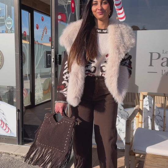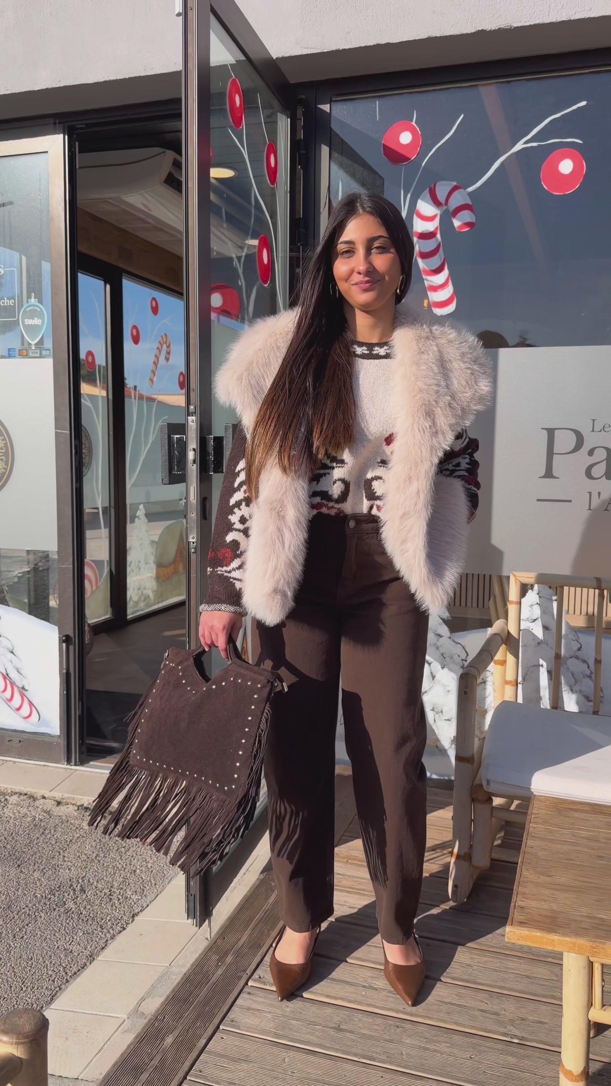 Sa couleur chocolat, élégante et facile à associer, en fait une pièce forte à porter aussi bien avec une maille, une blouse en dentelle ou un gilet sans manches.