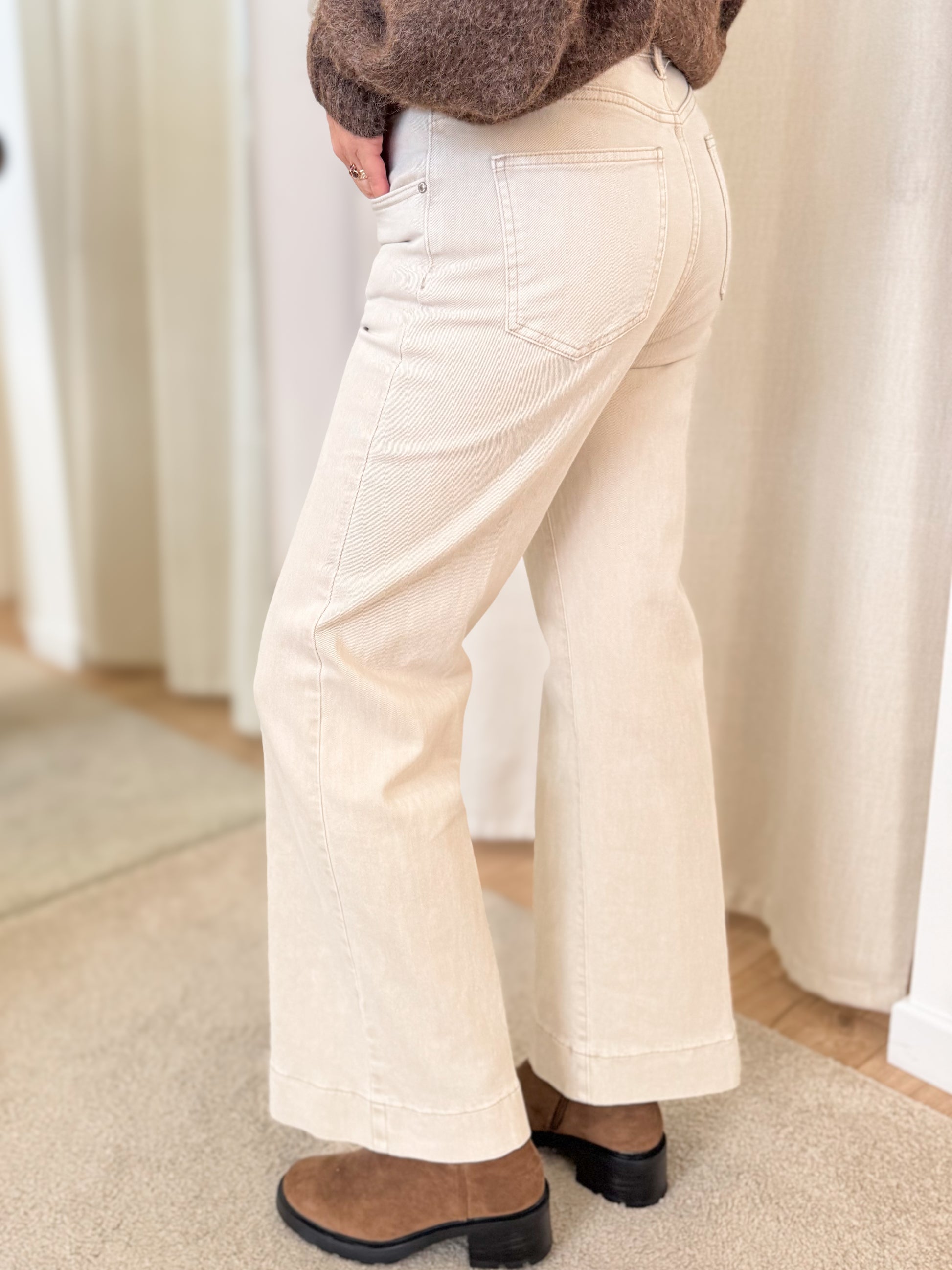 Un pantalon coupe wide leg ultra confortable, parfait pour illuminer vos looks d’hiver comme de mi-saison.