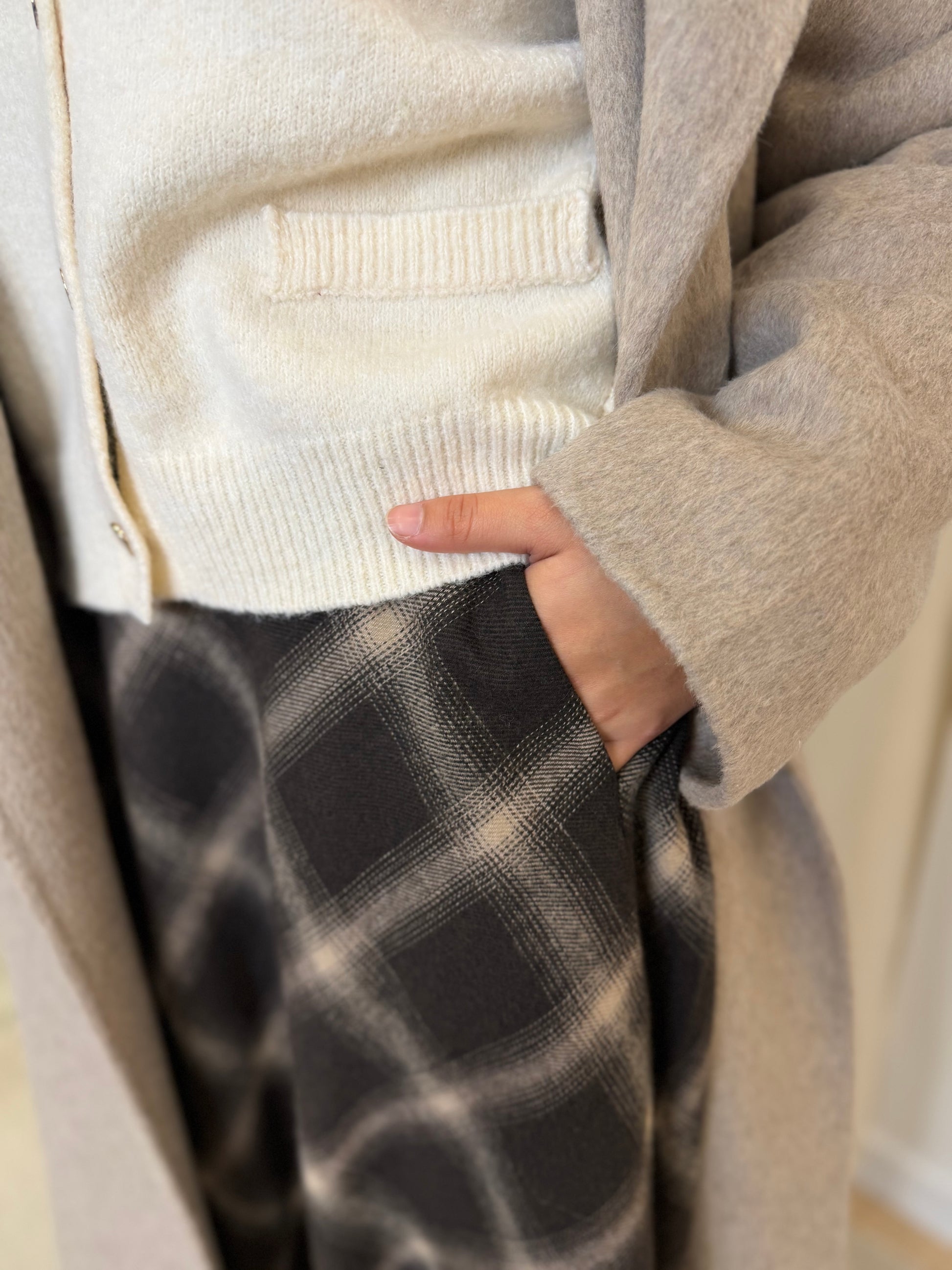 Une jupe longue élégante au motif carreaux brun-beige, parfaite pour l’hiver 🍂