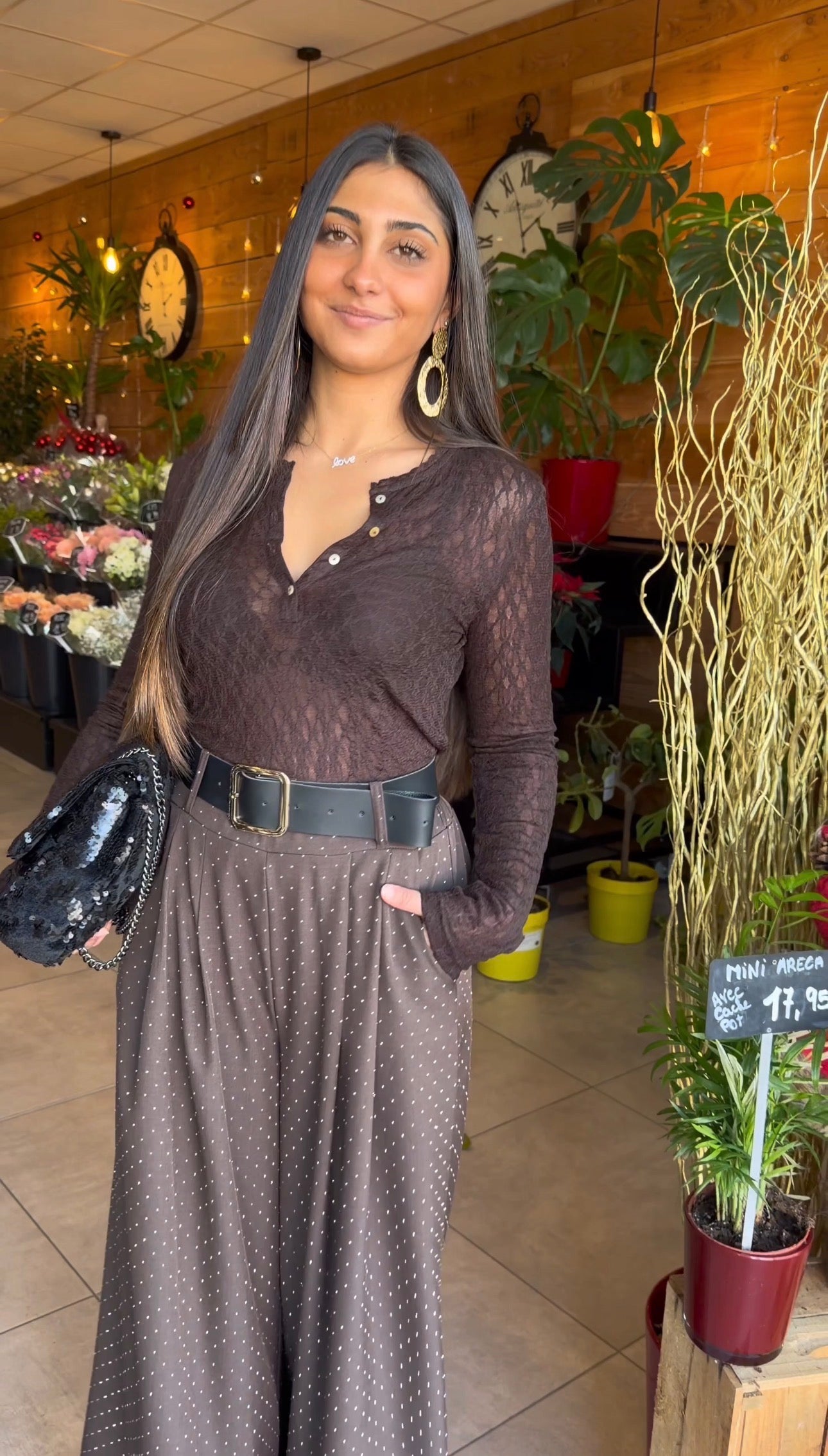 Pantalon Calyssa strass choco